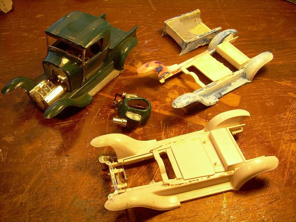 Got some rough old Ala Kart bits and thought it would be fun to do an update of this iconic show car. Nice thing about working with junk is that you can only make it better. Funny, but it seems I enjoy rebuilding sad old grotz more than starting with virgin kits these days.